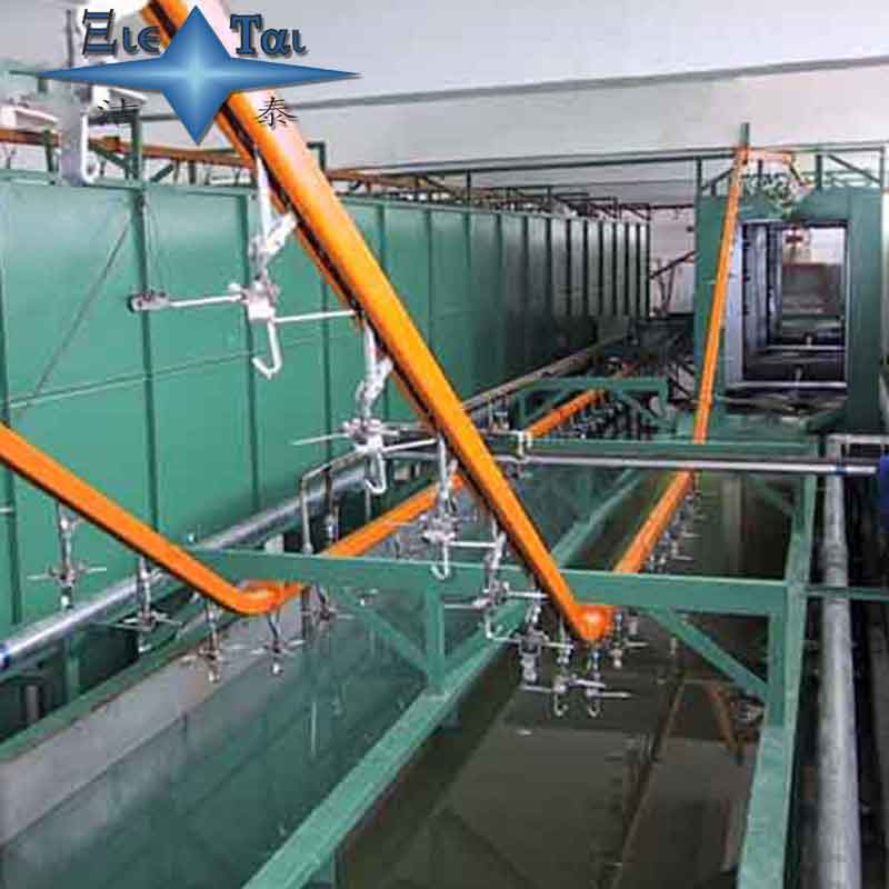 潔泰五金餐具用懸掛鏈式多槽超聲波清洗機,采用懸掛輸送鏈和專用掛具,懸掛輸送工件,設置超聲清洗、漂洗、噴淋、脫水、烘干等多道工序,變頻器無級調節懸掛鏈運行速度,適應多種工件不同需求的清洗節拍,可根據場地靈活布置各清洗工序,運行平穩,可靠性高,操作簡便,根據客戶不同的需求作非標設計。